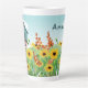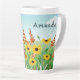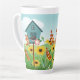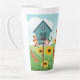 For a thoughtful gift add a name, slogan, or another greeting to this Latte Mug. This latte mug features a unique yellow flower garden design with a birdhouse. (nature gift idea for a bird lover)
