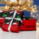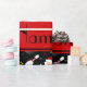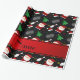 Modern and trendy Custom name sports black bowling balls, pins ,santa claus, green christmas trees, red, green and yellow stars, blue white snowflakes, snow, santa hats pattern background and red stripe personalised with just add your name gifts or monogram gifts or your initials for a unique gift. Sports gift ideas for men and boys and girls. Ideal for christmas presents.