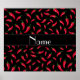 Chilli peppers gift ideas. Red Chilli peppers pattern with black background, black stripe personalised with your name gifts or monogram gifts or your initials.