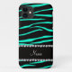 Personalised name black turquoise zebra stripes Case-Mate iPhone case