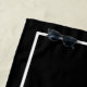 An elegant personalised name black and white beach towel. Customise the elegant script typography with your text. Ideal gift for an anniversary, wedding gift, bridal shower or honeymoon gift.