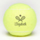 Personalised tennis balls printed with custom name or text in a classic elegant calligraphy feminine and girly script font with classic double crossed tennis racquet and tennis ball icon monogram. A perfect gift for mum, grandmother, or any woman or teen tennis player who would love the fun and unique twist on the classic tennis icon design of these modern monogrammed practice and keepsake tennis balls.