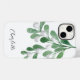 This Christmas phone case is decorated with watercolor green mistletoe and white berries.