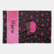 Personalised name cupcake pink hearts on black tea towel