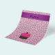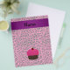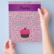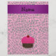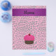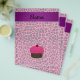 Faux glitter pink cupcake with chocolate cake and red cherry on top with pink leopard pattern background and purple stripe personalised with your name gifts or monogram gifts or your initials