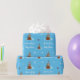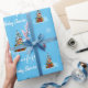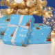 Beautiful blue wrapping paper with cute smiling teddy bear, amazing snowflakes and tiny red gifts and hearts on it. Personalise it with any desired text. Perfect to wrap mummy's-to-be baby shower gifts.