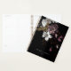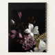 This notebook features a beautiful dark and moody blush pink, white and gold floral design on a black background.