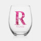 Personalised Name Elegant Pink Floral Monogram "R" Stemless Wine Glass