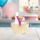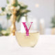 The design features the alphabet letter "Y" in a pink floral pattern derived from a photograph of spring flowers, along with customisable script typography for name or other personalisation. Personalise this monogrammed stemless wine glass by adding the name or words of your choice to best suit your purpose or event!