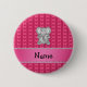 Personalised name elephant pink hearts and stripes 6 cm round badge