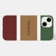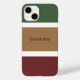 Modern and stylish personalised cell phone case with a fall block colours. Large green, tan and maroon colours with small white stripes. Your name printed in a maroon text.