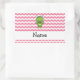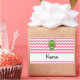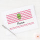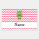 Create your own custom Personalised with a name,monogram, or initials or saying cute cartoon baby green frog with a pink and white chevrons zig zag pattern background and white stripe. Cute frog gift ideas for kids.