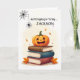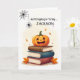 Send Halloween smiles with this playful design featuring a cheerful jack-o’-lantern resting on a stack of books while a spider drops from its web. A perfect choice for students, kids, friends, or family members, this festive card lets you add a personalised name on the front for an extra-special touch. Ideal for anyone who loves spooky fun, fall colours, and thoughtful surprises, it’s a delightful way to share Halloween cheer in a way that feels uniquely theirs.
