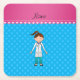 Personalised name girl doctor blue polka dots square paper coaster
