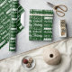 Festive green Christmas name collage wrapping paper decorated in nine different fonts spelling your name in white. Cute custom kids gift wrap with fun typography in white.