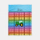 Modern and trendy cute cartoon green tractor pattern with red,blue, yellow, purple,pink, blue, green and orange plaid pattern background and sky blue stripe. Personalised custom name tractor gifts. The best tractor gift ideas for farmers, men and boys and girls. Ideal for birthdays.
