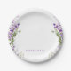 Personalised Lavender cocktail paper plate. White Background. Greenery. Watercolor lavender. Shower.