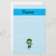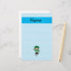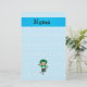 Create your own custom Personalised just add name,monogram, or initials or saying on your cute cartoon hockey player kid with blonde hair, blue eyes, green uniform and helmet, with a hockey stick and puck, light blue bubbles pattern background and blue stripe. Cute hockey gift ideas for boys. If you hit the customise it button you can change the colour and type of font.