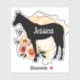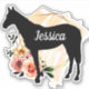 This PERSONALISED HORSE STICKER make great custom gift for those who love horses! It features a black horse silhouette with a space for rider's name, barn name, horses name. Great for your Waterbottle, tack box, trailer, horse box, laptop...In my HORSE COLLECTION you can find different flower themed backgrounds too. Check out our other HORSE RIDING THEMED GIFTS by clicking on the Personalised horse gifts - In our shop where you can choose from a wide range of personalised horse gifts such a Personalised horse name vinyl stickers, Equestrian keychains, Tshirts, Tote bags, Drawstring bags...Ect. Just check all our collections and choose your custom horse gift.