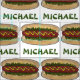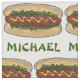 Fabric features an original marker illustration of a hot dog with mustard and relish on a bun. Simply personalise with your name!