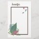Feather floral boho design. Personalised name in cute pink, blue, green, brown colours. Sweet ornament decorated border frame notepad
