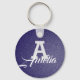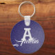 It's A Blue Key chain With a Personalised Name and Monogram in a White colour
