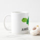Personalised name kids mug with cute green turtle. Wildlife vector art illustration for children. Personalizable text template. 11oz white coffee cup for boy or girl. Neutral design.