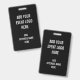 Personalised attendee name badge with event logo in black and white. Perfect for an event at school, museum, charity, business, conference, and corporate events, retreats. Anywhere that you need a name badge printed. You can add your text or upload an your company logo as an image.