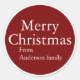 Personalised Name Merry Christmas Red Retro Script Classic Round Sticker