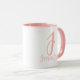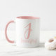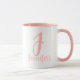 The design features customisable script typography for name and monograph personalisation in an elegant light rose, pastel pink script colour.