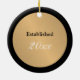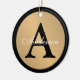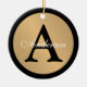 Personalise this gold metallic look button outlined in black Christmas holiday ornament with any last name, single custom monogram and year.