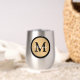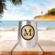 Personalise this gold metallic look button outlined in black with any name and single custom monogram.