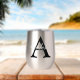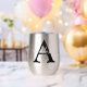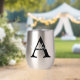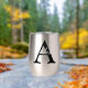 Personalise this silver metallic thermal wine tumbler with any surname and single custom monogram.