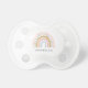 A sweet pacifier featuring a modern muted rainbow, with baby's name below. Thank you so much for supporting our small business, we really appreciate it!