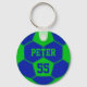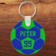 Personalised Name Number Green Blue Soccer Ball Key Ring