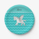 Personalised name pegasus turquoise chevrons paper plate