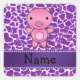 Create your own custom Personalised with a name,monogram, or initials or saying cute cartoon pig animal with a purple glitter giraffe animal print (not real glitter) pattern background and purple stripe. Cute pig gift ideas.