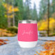 Personalised pink script wine tumbler. Modern, elegant, trendy wine tumbler.
