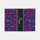 Crochet gift ideas. Crochet pattern red and blue balls of yarn with crochet hooks with purple background and black stripe personalised with your name gifts or monogram gifts or your initials. Ideal gifts for crocheters.