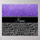 Personalised custom name purple glitter (not real glitter) pattern and black leopard (animal print) pattern with a black diamond rhinestone stripe (not real diamonds) personalised with just add your name gifts or monogram gifts or your initials. Ideal for bride and groom weddings, wedding showers, engagement showers, engagement party, anniversary, save the date, bachelorette party, sweet 16, birthdays and much more featuring an elegant and traditional fancy lettering.