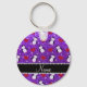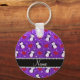 Personalised name purple glitter penguins hearts key ring