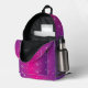 Personalised Name Purple Glitter Star, Purple background, and Glitter white Star pattern printed backpack with optional personalisation.and space to add your kid's name. The perfect gift for any kids boys or girls, ideal for your child to take to school or preschool, sports or work.l! Customise the text field for a great bag for back-to-school