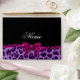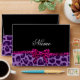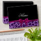 Purple leopard print pattern background with a pink leopard bow animal print ribbon personalised with your custom name gifts or monogram gifts or your initials featuring an elegant and traditional fancy lettering. Leopard print gift ideas.