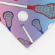 Modern and trendy sports lacrosse pattern with red and blue lacrosse sticks and a white rubber ball with rainbow background and with rainbow black stripe personalised with just add your name gifts or monogram gifts or your initials for a unique gift. Sports gift ideas for men and boys and girls.