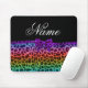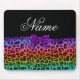 Rainbow leopard print pattern background with a purple leopard bow animal print ribbon personalised with your custom name gifts or monogram gifts or your initials featuring an elegant and traditional fancy lettering. Leopard print gift ideas.