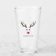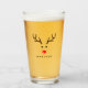 Personalised name Christmas holiday pint glass with cute reindeer face design.