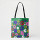 Personalised Name Retro Green Flowers Vibrant Tote Bag