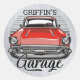 Personalised NAME Retro Red Classic Car Garage Round Sticker