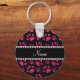 Personalised name rose pink glitter cat paws key ring