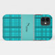 Personalised name turquoise plaid pattern Case-Mate iPhone case